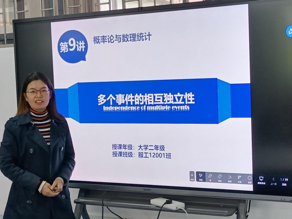 张群娇老师进行了题为“多个事件的相互独立性”的 公开课讲授。张老师从课程回顾,课程引入,课程讲解,课堂活动和课后小结等方面讲述相关内容。张老师在授课的过程中设置了巧妙的教学互动,穿插了课堂思政的案例和视频。并于报告后交流课程思政案例和视频处理的方法。
