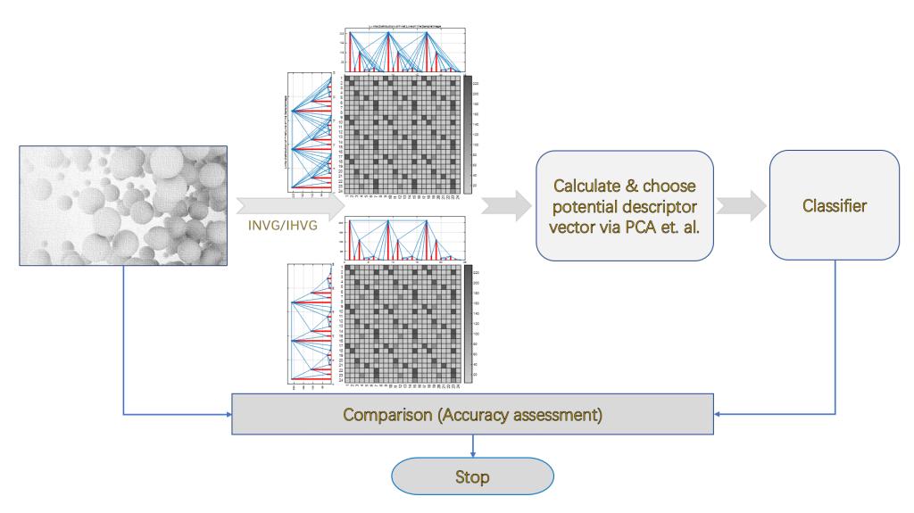 《Chaos》(IF:3.642)上发表了题为:Texture Classification Based on Image (Natural and Horizontal) Visibility Graph Constructing Methods的论文,该论文通讯作者为公司应用数学与交叉科学研究中心刘杰教授,第一作者为研究生裴来凡和李朝辉同学。纹理分类在医学图像分析等领域有着广泛的应用。本文提出了一种基于可视图的纹理分类方法。首先,将数据集中的每个Brodatz纹理图像转换为相应的IVG(图像可视图)和IHVG(图像水平可视图)。然后,提取其度分布P(k),并将其输入到不同的分类器中。主成分分析(PCA)应用于输入向量,以减少特征数量并避免最终过拟合,并采用5-折交叉验证程序。利用人工纹理图像的IVG二次判别分析法(QDA)可获得100%的分类准确率。在自然纹理图像的IHVG上,利用线性支持向量机可以获得94.80%的分类准确率。文章DOI链接https://doi.org/10.1063/5.0036933。