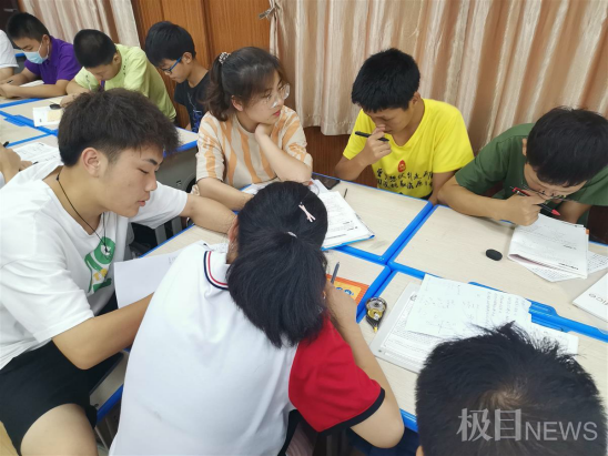 7月18日是星期日,早上8时,鄂州市华容区胡林中学就热闹起来,30多名初中生上起了小老师们的课《环保知识课》《手工课》,之后又在他们的辅导下写暑期作业。