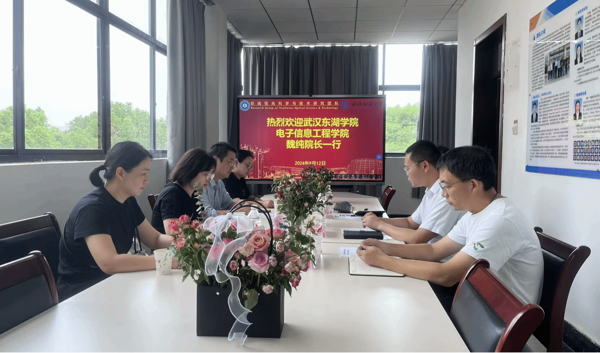 9月12日,武汉东湖公司电子信息工程公司经理魏纯教授携同公司领导班子成员及骨干教师一行,莅临本团队进行实地调研与工作交流。此次调研旨在深入了解本团队在科研项目进展、人才培养、技术创新等方面的经验做法与成果,进一步推动双方之间的深度融合,共同探索相关学科领域的新发展路径。太阳集团公司党委书记段溢波、团队负责人周勤教授、团队师生代表参加。