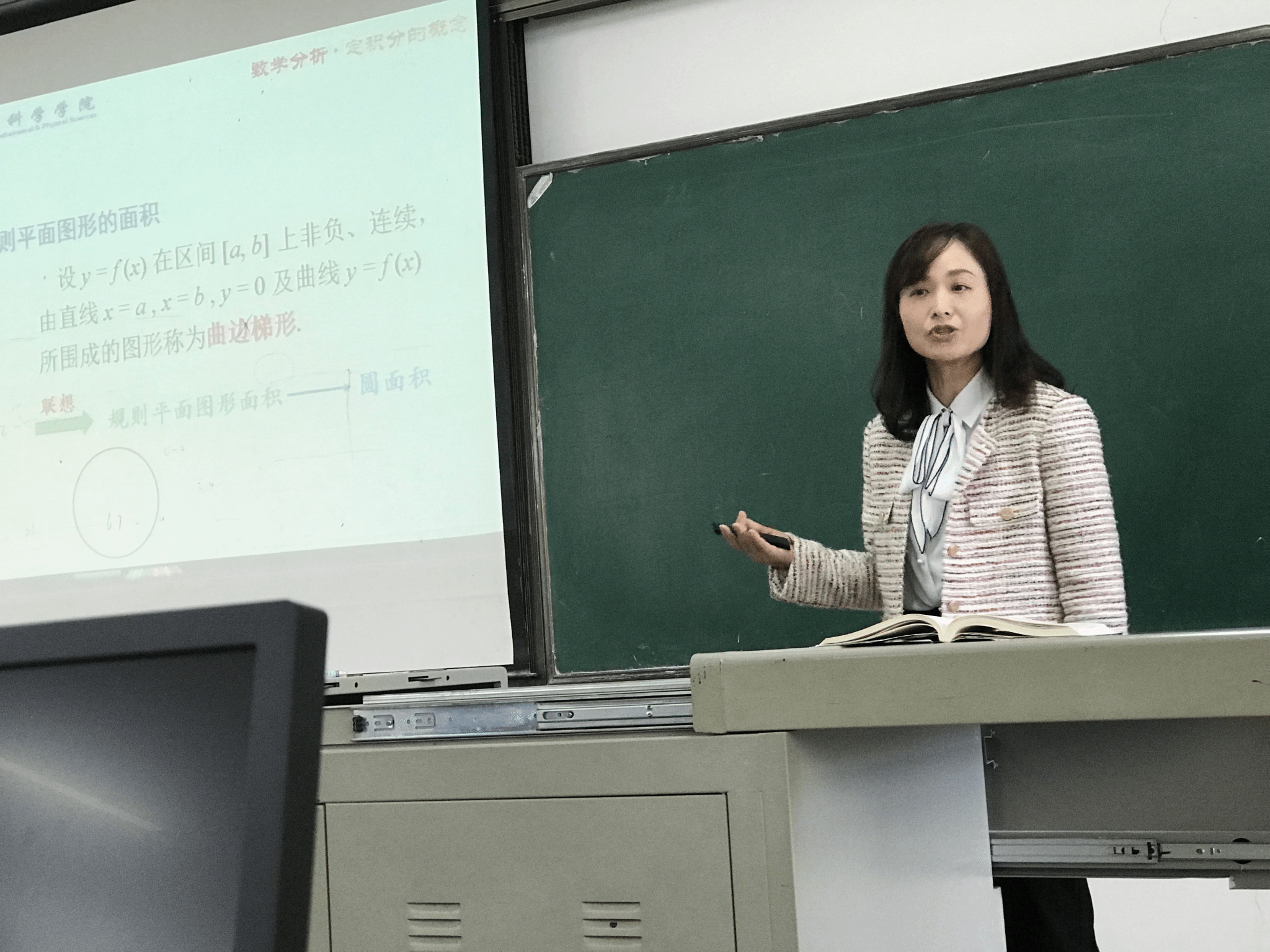 董敏老师讲授的课程是《数学分析II》,讲授的主题是“定积分的概念”。董敏老师精心准备了此次观摩课。她运用图文并茂、辅助动画演示的多媒体课件,将抽象的数学概念,生动形象的向员工讲述了出来。课堂气氛活跃,极大提高了员工的学习兴趣。