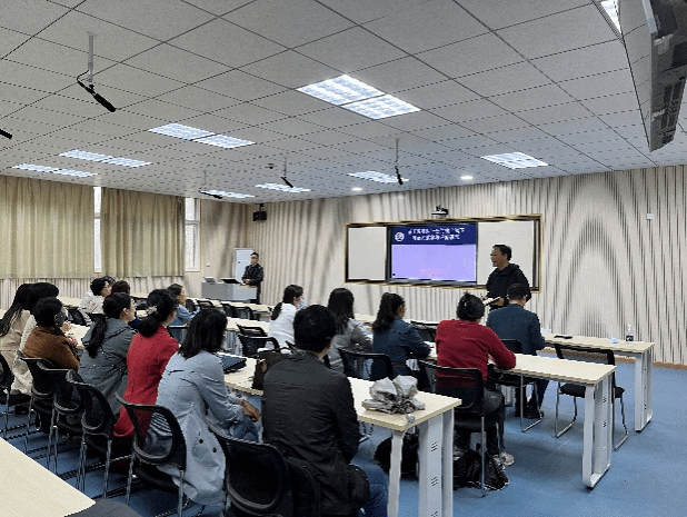 在交流过程中,郭教授将理论与教学实践相结合,通过课程网页展示和具体的案例分析,向老师们分享了课程在资源建设、任务设计及过程评价等方面的一些做法,并向老师们讲解了如何基于智慧树平台建设翻转课堂,更好地实现线上线下的衔接与互动;以及如何利用在线平台获取和分析学习数据,优化过程管理等。