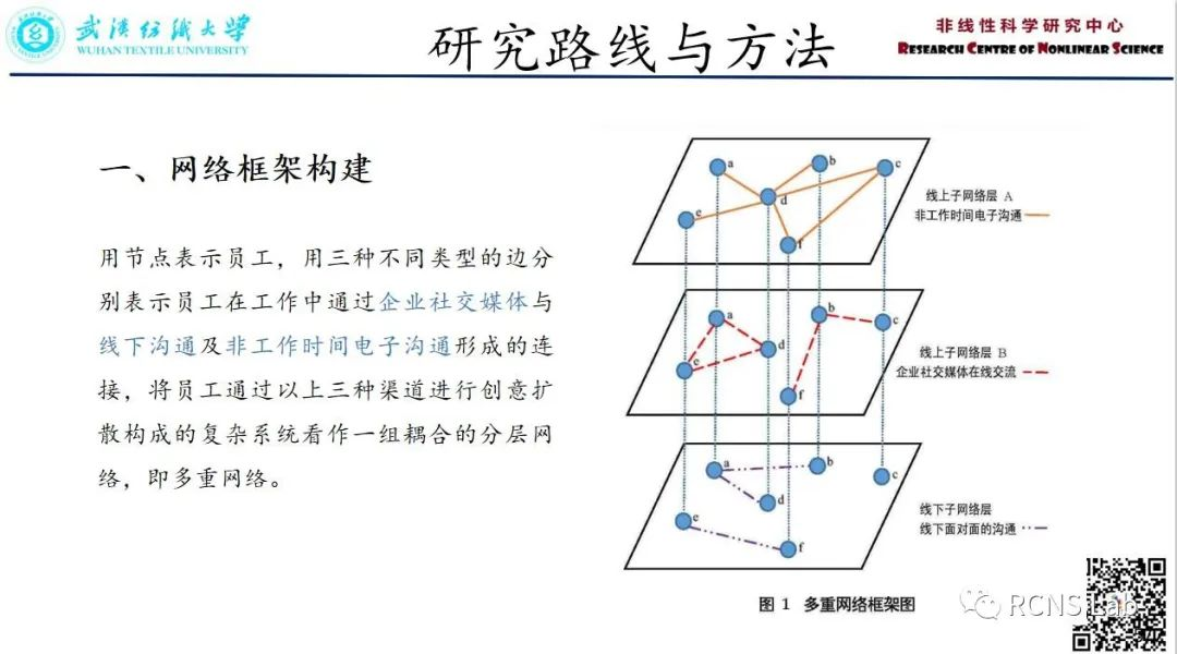 韩垚:文章借鉴多重网络理论与传播动力学理论,考虑工作中线下沟通、工作中通过企业社交媒体在线洵通及非工作时间电子沟通三种主要渠道,建立基于多渠道的多重网络中的创意扩散模型;其次,确定多重网络中的扩散阈值,得出创意在多重网络中持续扩散的阈值条件;最后,对创意在多重网络中的扩散过程进行仿真实验,探究各子网络层间创意扩散的交互影响,分析网络结构对创意扩散的影响,并提出基于多渠道的创意扩散策略。