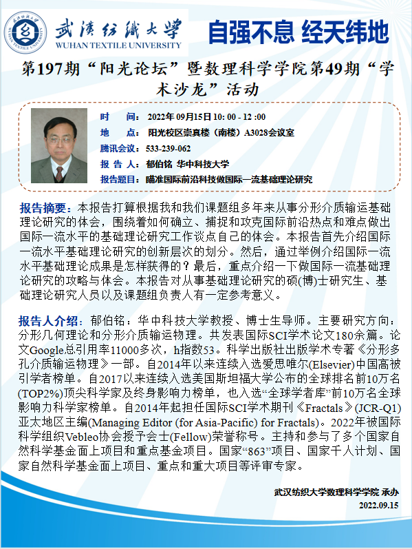 第197期“阳光论坛”暨15vip太阳集团第49期“学术沙龙”活动预报