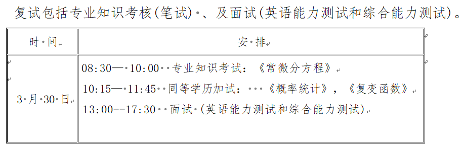 复试包括专业知识考核(笔试) 、及面试 (英语能力测试和综合能力测试)。