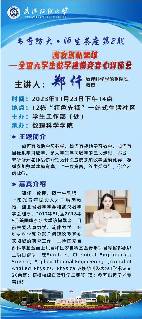 上一条:公司举办第四期书香纺大师生茶座 下一条:15vip太阳集团关于2023年研究生攀登奖学金、优秀研究生和优秀研究生干部拟推荐名单公示