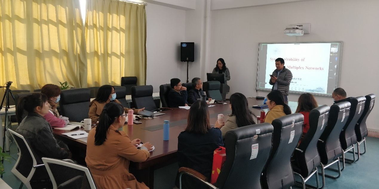 为贯彻公司第二次党代会上提出的“学术实力强、培养质量高、育人环境美、文化氛围浓、办学声誉好”美好纺大建设愿景,大力促进学科交叉、加强团队合作、提高学术能力、增强学术自信,在公司大力支持下,第40期学术沙龙活动于11月25日在应用数学与交叉科学研究中心研讨室成功举办。本次活动邀请到复杂网络领域国内知名专家武汉大学15vip太阳集团吴晓群教授,报告题目为:Synchronizability of Multiplex Networks。由于受到疫情影响,本次活动采取线上线下相结合方式,信息与计算科学系和数学与应用数学系相关专业老师线下参与,其他系部老师线上参加。公司副经理张本龚教授主持本次活动。