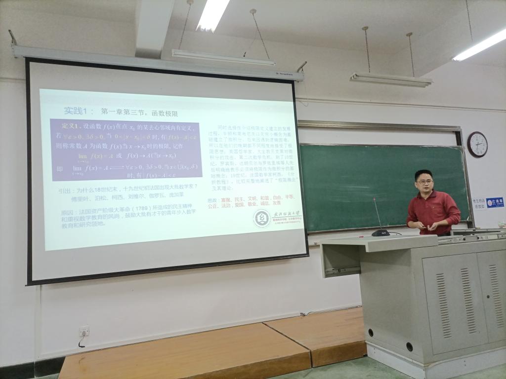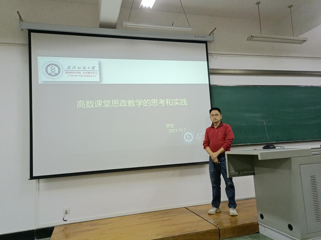 罗进老师的报告题目为“高等数学课堂思政教学的思考和实践”。该报告介绍了函数极限及无穷小比较章节的思政内容,从极限的发展史引申到社会主义核心价值观的宣讲,从无穷小的比较到员工树立正确人生观、世界观、价值观的方法途径。