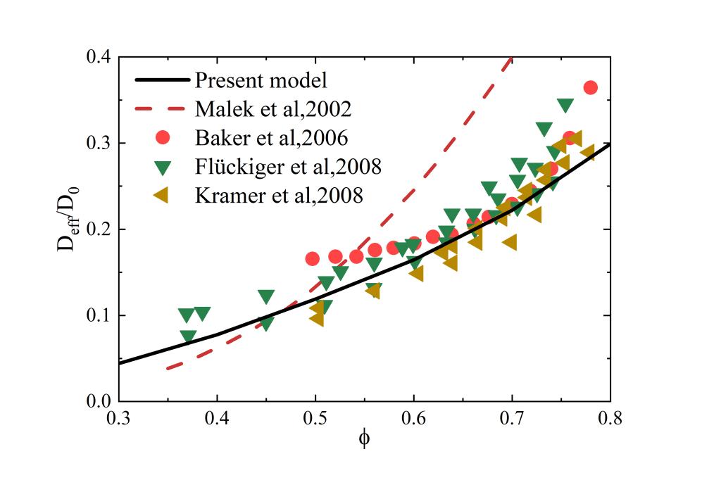 《Fractals》(IF:3.665)在线接收题为:Effective gas diffusion coefficient of fractal porous media with rough surfaces by Monte Carlo simulations的论文,该论文通讯作者为公司应用数学与交叉科学研究中心郑仟副教授,第一作者为研究生尹作壮同学。气体扩散系数是表征多孔介质输运特性的一个重要参数。本文基于微观毛细管的分形特征,采用蒙特卡罗方法研究了毛细管表面粗糙度对气体扩散的影响,提出了粗糙表面多孔介质有效气体扩散系数的概率模型。该模型表示为多孔介质几何参数的函数,如孔隙度、孔隙分形维数、迂曲度分形维数和相对粗糙度。论文着重探讨了相对粗糙度对有效气体扩散系数的影响,结果表明,粗糙表面多孔介质的有效气体扩散系数随着相对粗糙度的增加而减小。此外,该研究还详细分析了多孔介质其它结构参数对气体扩散的影响。该模拟方法可推广用于粗糙表面分形多孔介质中的气体流动和传热过程的分析。