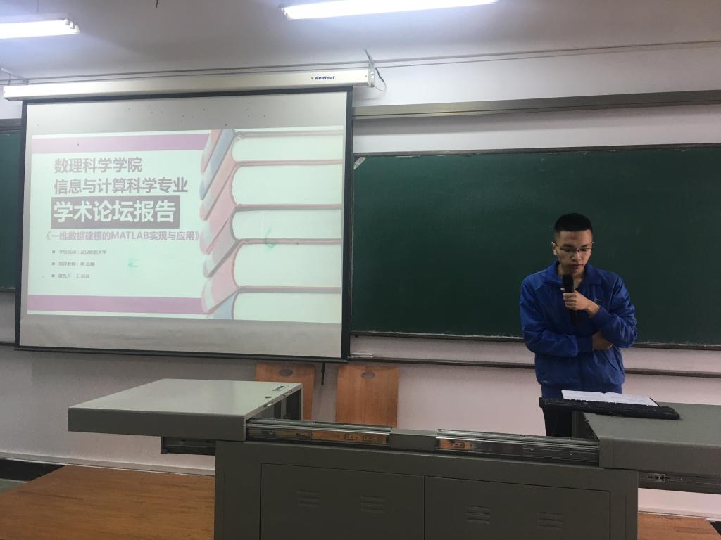 本次汇报的3名本科生均来自信科11701班。王后浪同学报告的题目是《一维数据建模的MATLAB实现与应用》,介绍了Lagrange插值、Newton插值、三次样条插值与最小二乘拟合是如何在MATLAB实现的,并且对比了在MATLAB上Lagrange插值和Newton插值的区别,而且将三次样条插值和最小二乘拟合与MATLAB相结合去解决遇到的实际问题。徐珂同学报告的题目是《傅立叶级数及FFT算法》,讨论了傅里叶级数与傅里叶变换,其中有周期信号的傅里叶级数的两种表现形式,傅里叶变换中的DFS与DFT及FFT算法,傅里叶级数和傅里叶变换一般都是将时域的信号变化到频域上,然后在频域上再进行相应的分析。赵博同学报告的题目是《粗粒化模型预测DNA单链分子的空间结构》,介绍DNA相关信息、DNA粗粒化模型EFOLD,并通过蒙特卡洛模拟退火方法和metropolis法则寻找DNA空间结构,模拟出单链DNA分子的空间结构。