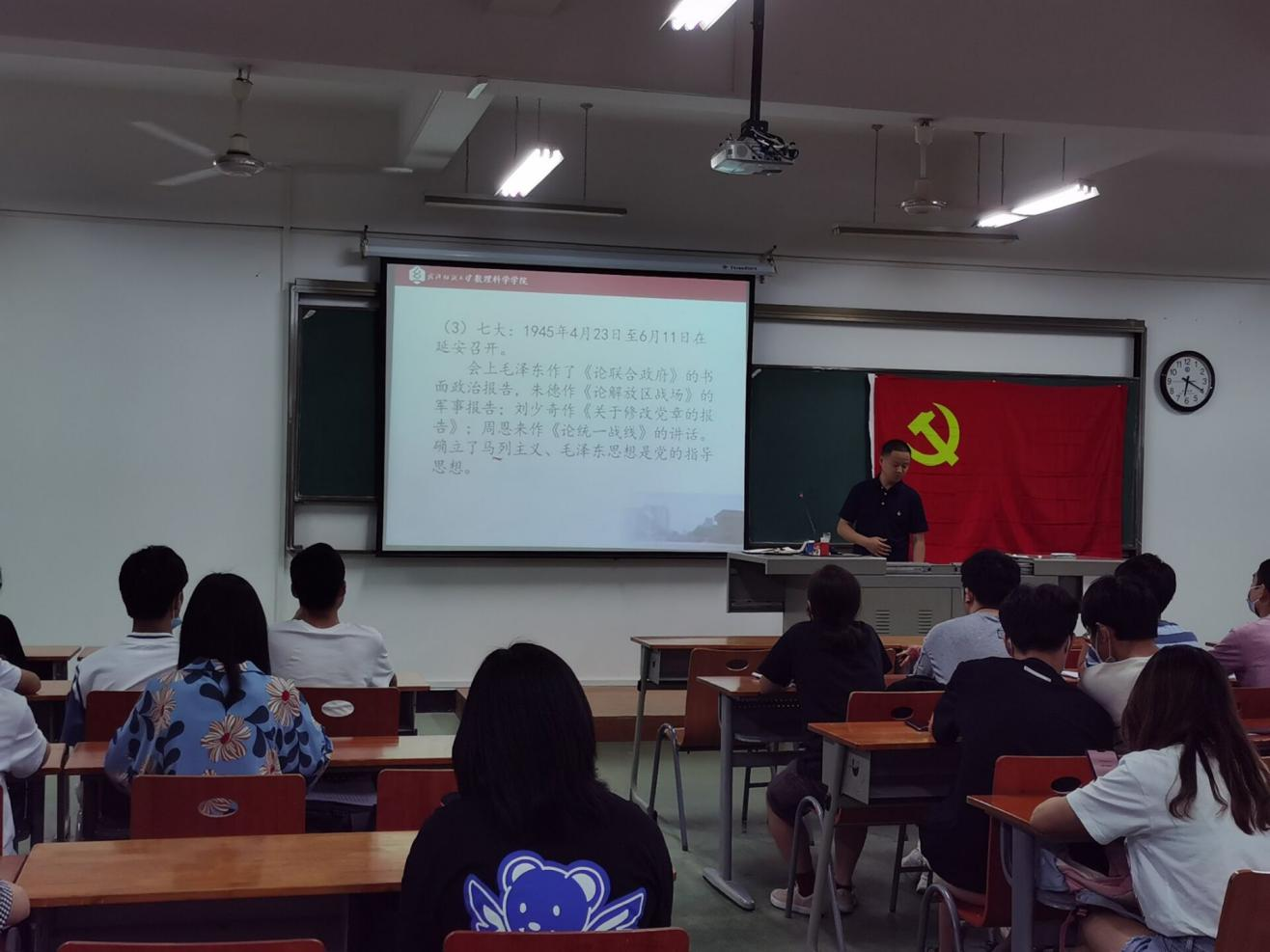 6月3日,公司党委副书记陈国鹏在崇文楼203教室为2021届毕业生党员讲授党史教育主题党课。公司员工党支部书记方媛,全体毕业生党员参加学习。