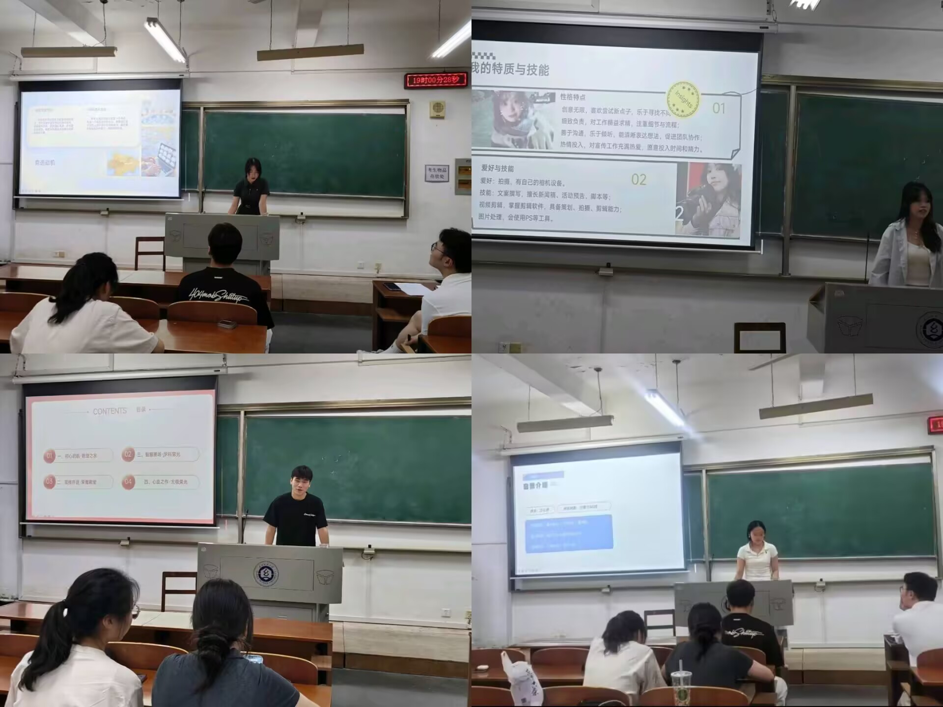 竞选时,曾琦老师向我们大致讲解了主席的一些职责,随后便开始了各个员工答辩展示,在每位竞选的员工讲明了自己的竞争优势后,曾老师以及主席团的成员则会对他们针对性的提问。其中,应数12302班刘欣荷竞选学习部主席;应数12301班竞选宣传部主席;应数12302班章松竞选组织部、创新创业实践部主席;应数12302班黄丹丹竞选劳育、志协主席;信科12302班张雅琼竞选文体活动部主席;应数12301班夏韵竞选宣传部主席;应数12301班张子豪竞选体育部主席;应数12302班卫云倩竞选秘书部主席。