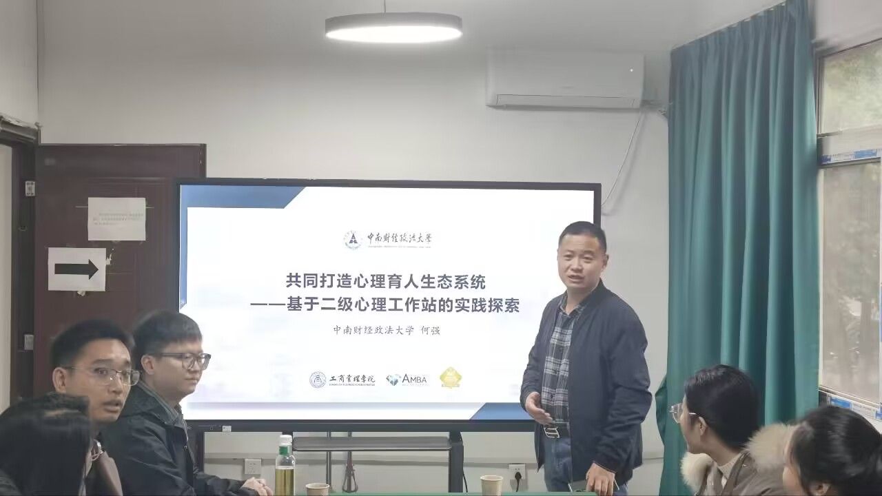 活动中,何强老师分享了中南财经政法大学在心理育人方面的创新实践。何强老师着重介绍了二级心理工作站的升级,这一举措显著提升了对员工心理健康需求的响应能力,他分享了如何通过设计心理文化活动,如“研心术”工作坊和“观心境”绘画治疗,来增强员工的心理健康意识和自我调节技能。何强老师还介绍了新生心理教育工具的有效运用,这些工具帮助新生顺利过渡到老员工活。