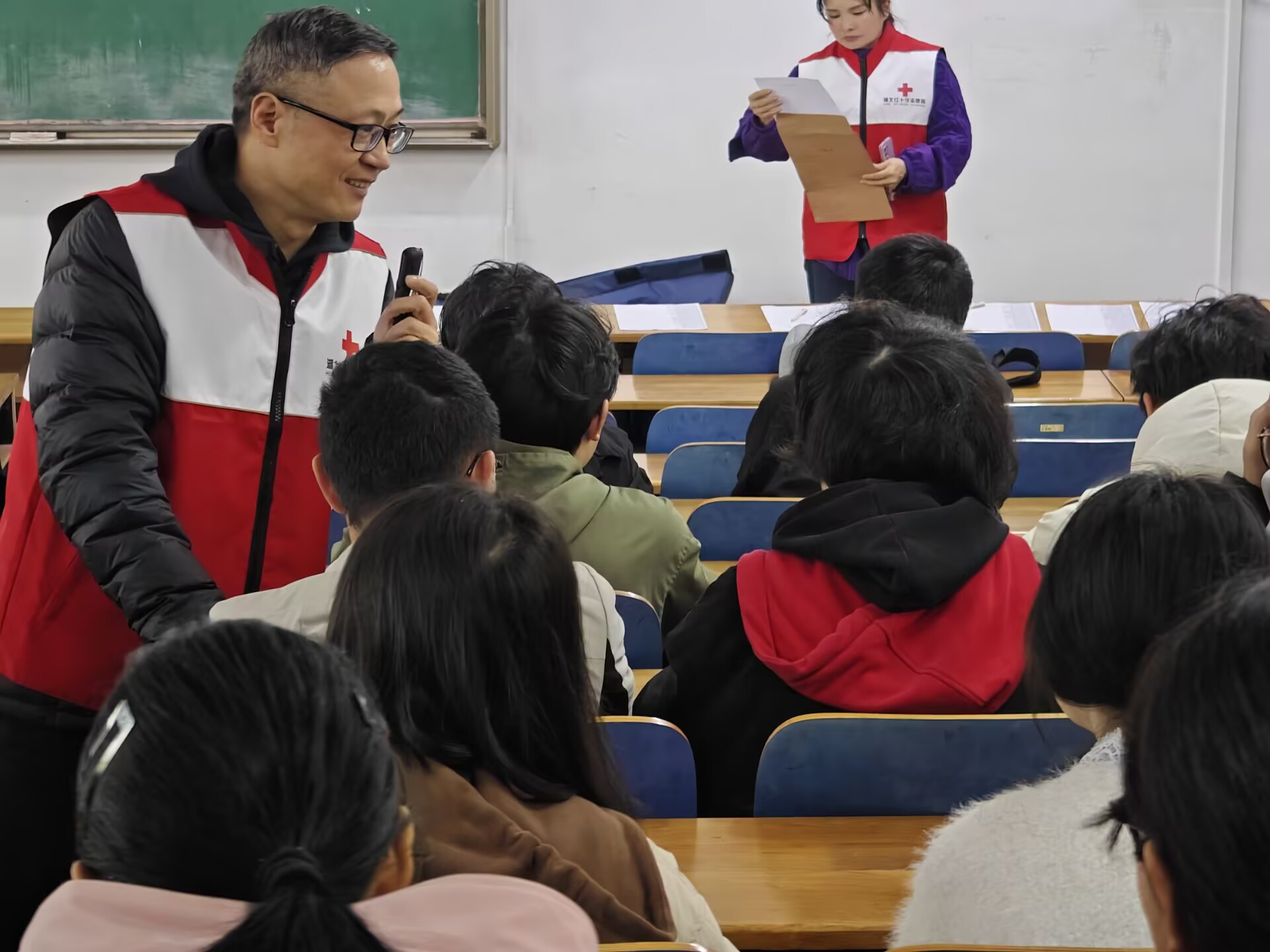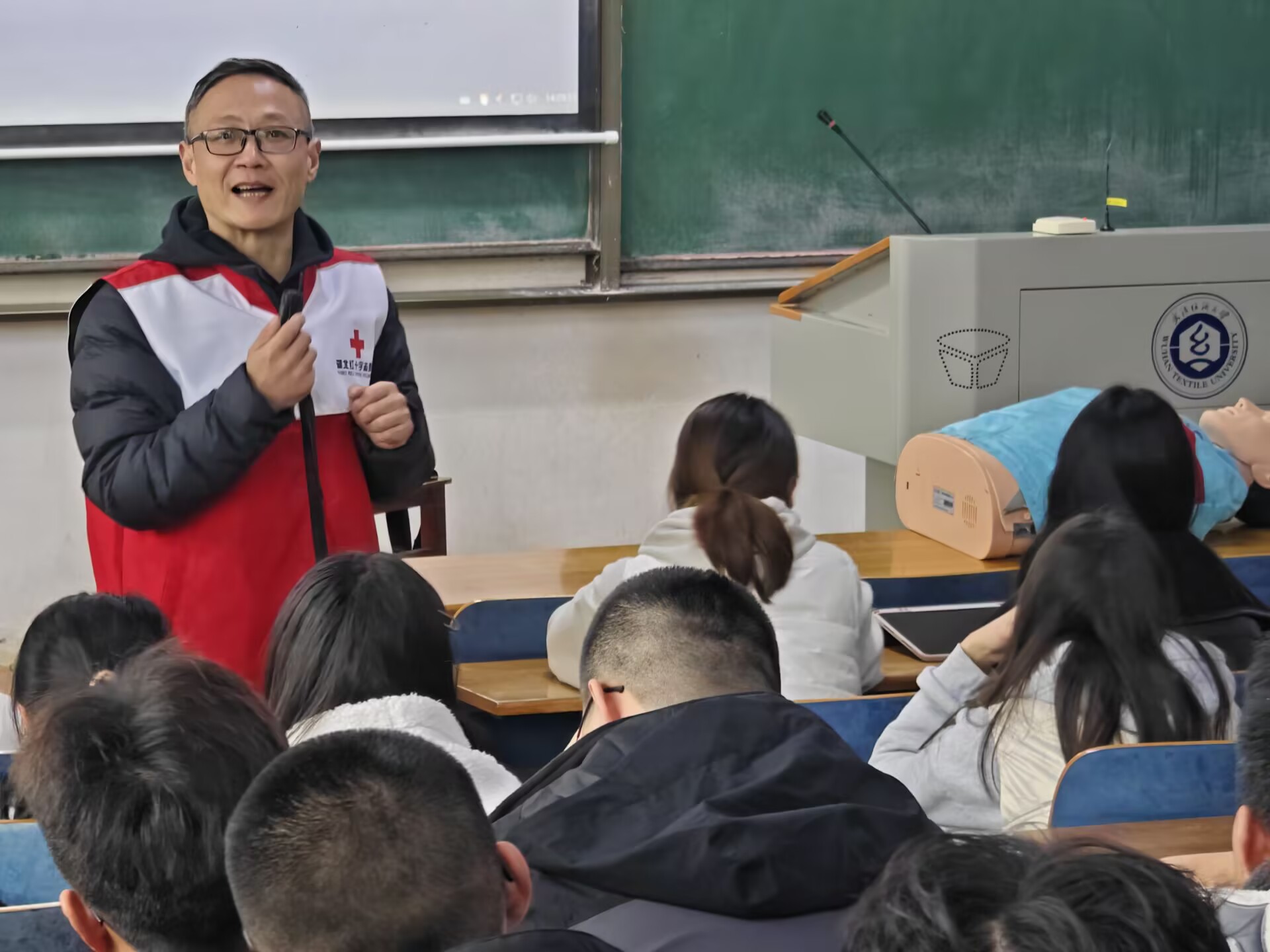 为了给同学们普及急救知识、培养急救意识和责任感,15vip太阳集团于3月13日下午在崇志楼118教室举办心肺复苏与意外伤害应急讲座,讲座由公司党委副书记陈国鹏主持,中国红十字会总会、湖北省红十字会培训师李伟主讲,15vip太阳集团对急救感兴趣的同学参加此次讲座。