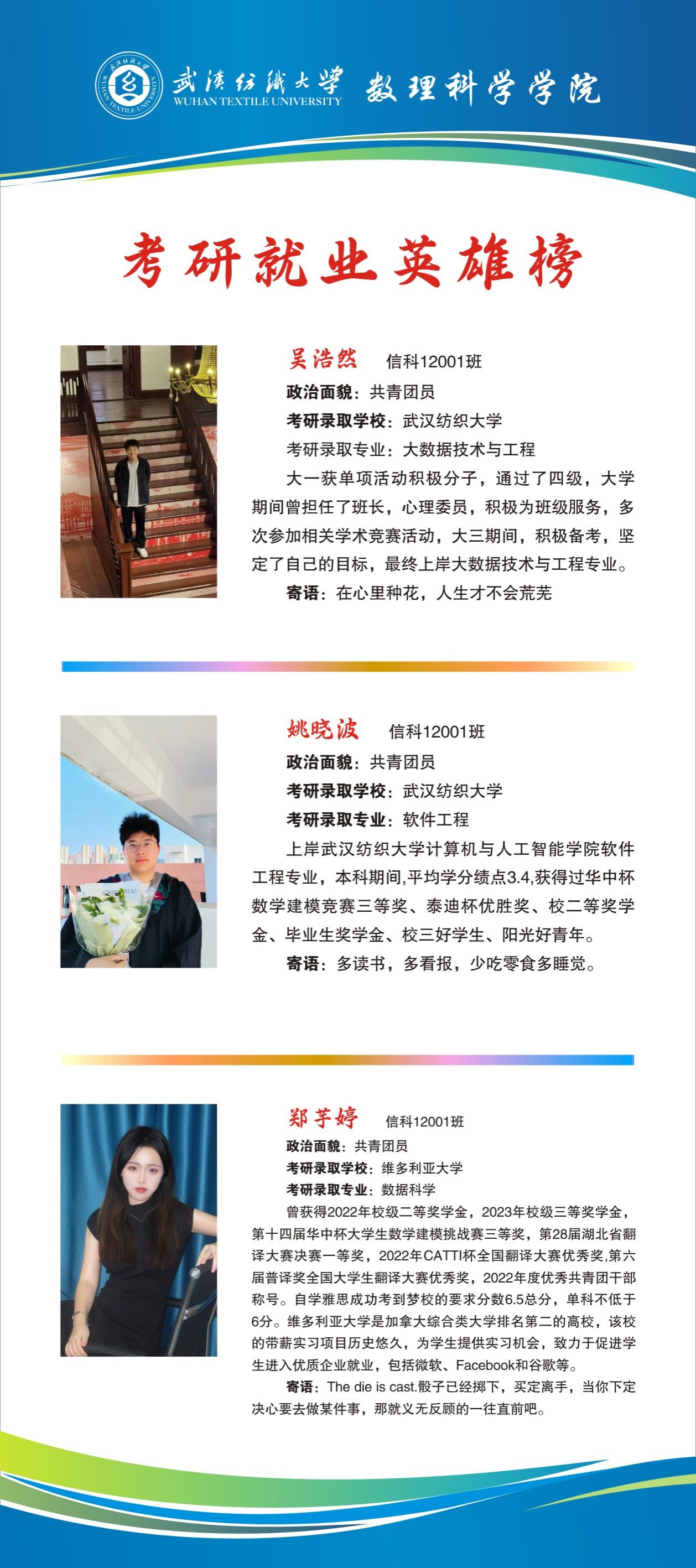 上一条:2024届考研就业英雄榜——周芷琪、曾杰、陈亚楠 下一条:2024届考研就业英雄榜——唐彪、王晨、王桂林
