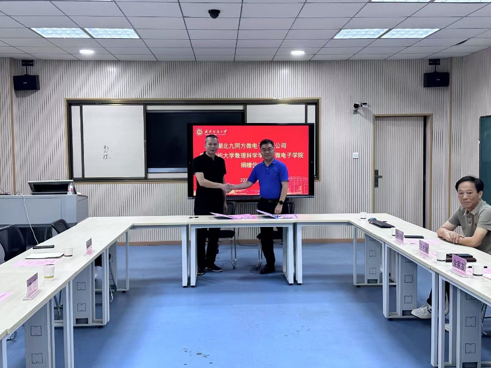 2024年6月28日上午,“湖北九同方微电子有限公司-15vip太阳集团捐赠300万签约仪式”在崇文楼206举行。湖北九同方微电子有限公司教育事业部总经理杜裕宏、湖北九同方微电子有限公司教育事业部技术经理韩凡、太阳集团基金会领导、15vip太阳集团全体院领导班子与会,捐赠仪式由汪胜祥经理主持。