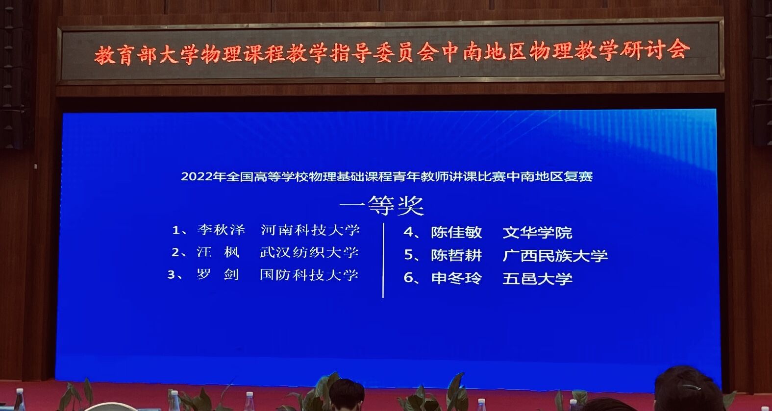 6月18日,来自中南赛区6个省份(湖北、湖南、广东、广西、河南、海南)的19位优胜教师同场竞技,经过为期一天的激烈角逐,最终公司汪枫老师以总分第二名的好成绩获得一等奖,成功晋级全国物理基础课程青年教师讲课比赛决赛,预祝汪枫老师在全国大赛的舞台上继续高歌猛进,取得优异成绩!