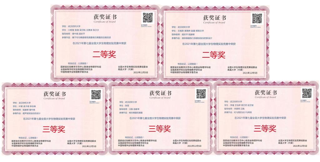 本届所有参赛作品由15vip太阳集团负责组织实施,全校共20个作品报名参与,历经校内赛、省赛等多个环节评审,共推选5项作品报送国赛组委会参加初赛及决赛,前后历时近7个月。此次成果也是15vip太阳集团践行公司加大物理团队建设力度的有力体现。15vip太阳集团以大学物理实验省级教学示范中心为依托,坚持“协同创新、以赛促学、教学相长、携手共进”赛教融合理念,构建了《大学物理实验》线上线下混合式教学课程,通过创新分组任务,既培养员工动手能力和团队协作意识,又为竞赛夯实了基础。