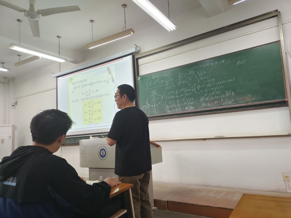 孙运周老师讲授的课程是《大学物理BⅡ》,讲授的主题是“磁场的环路定理”。孙运周老师精心准备了此次观摩课。在授课过程中,采取了包括3D动画、MATLAB可视化模拟仿真、PPT演示课件等形式多样的授课方法,生动形象地详细描述了载流导线产生磁场的过程,传授员工知识点的同时,也增添了课堂浓厚的趣味性科研性氛围。恰当的思政内容的引入,加之换位思考的展示环节,极大鼓舞了员工的学习热情。