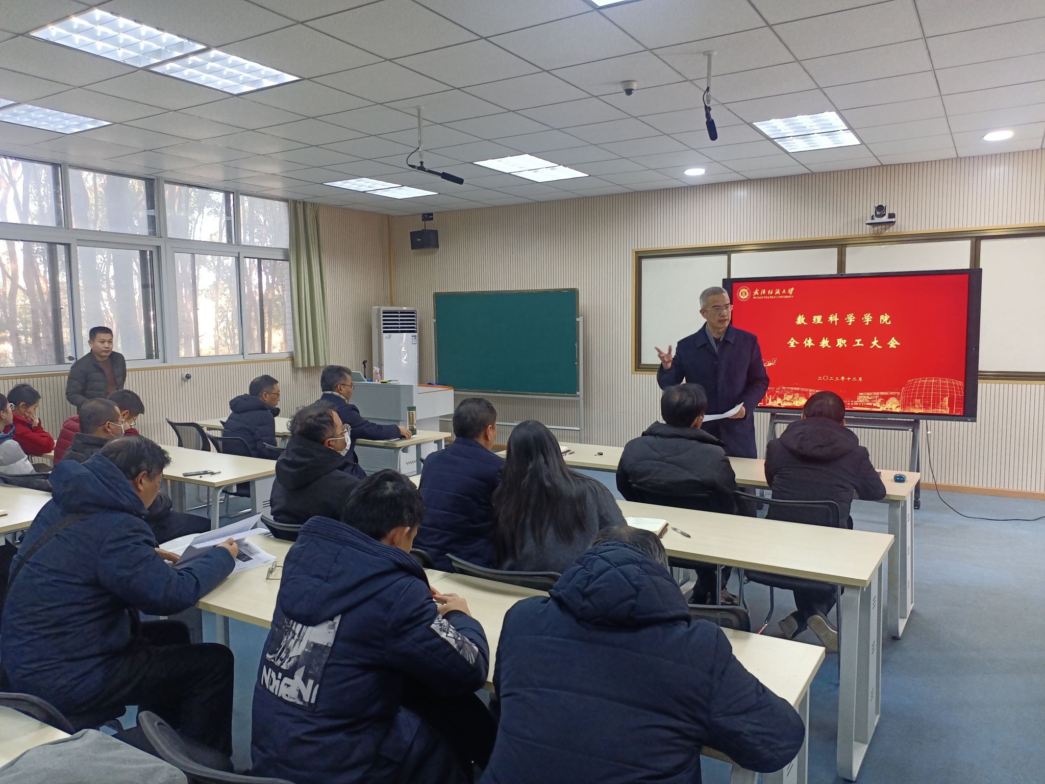 12月21日,15vip太阳集团在崇文楼205室召开公司领导班子民主测评暨教职工大会。教务处处长王济平代表公司与会指导,会议由公司党委书记段溢波主持。