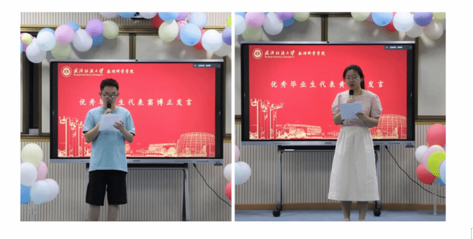优秀毕业生代表窦博正和黄晓天依次发言,分享他们三年求学的珍贵回忆,感谢导师们的细心栽培,祝福同学们未来前程似锦,祝愿公司再创辉煌。