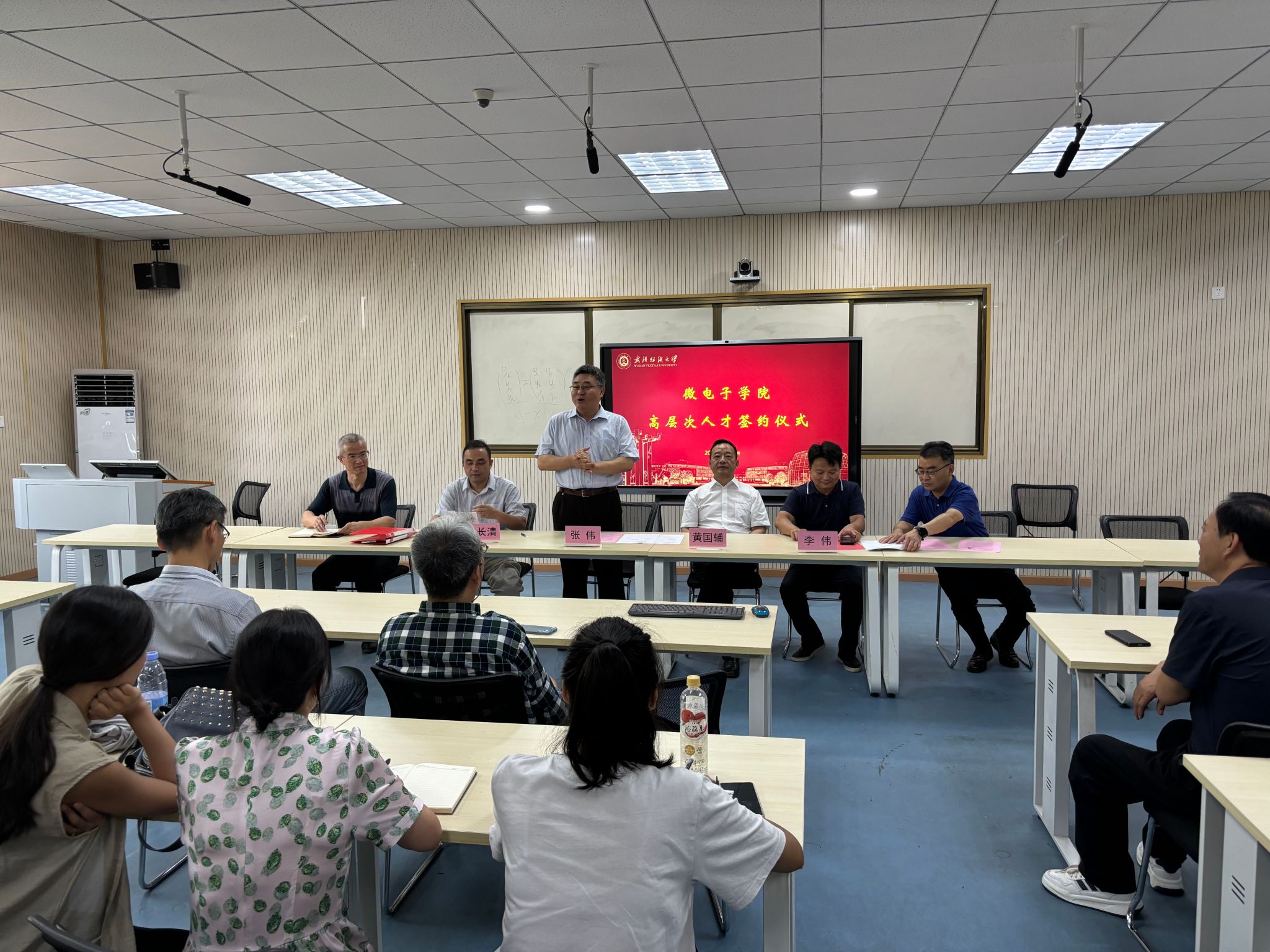 张伟博士进行了表态发言:非常感谢公司领导的关心与信任,今后将在公司、公司的坚强领导下,加倍投入时间和精力,在产教融合、科教融汇等方面发挥自己的作用,为微电子学科的建设发展作出应有的贡献。