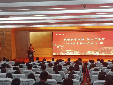 会议在激昂雄壮的国歌声中开始。微电子公司经理陈长清致以热情洋溢的欢迎辞。他对2024级新生提出三点希冀:一是心怀理想,笃志前行;二是勇于创新,敢为人先;三是脚踏实地,知行合一。他建议同学们广交朋友,勤于交流,特别牢记图书馆、运动场是自己受益终身的朋友。