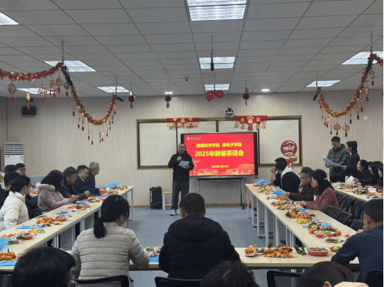 2025年1月10日上午,2025年迎春茶话会在阳光校区四号教学楼205室隆重举行。全体教职工齐聚一堂,共话一年来的工作成果,共迎新春佳节。