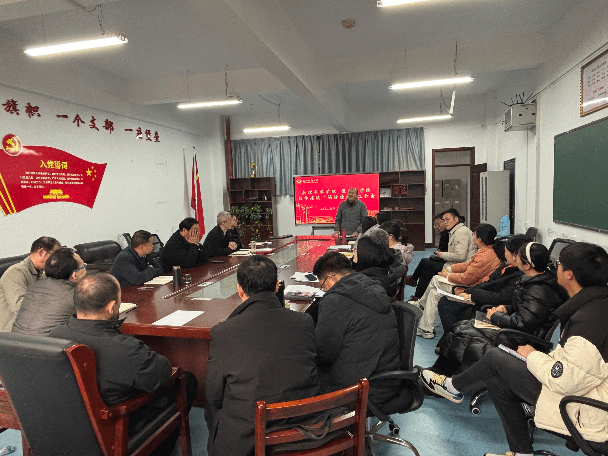 2025年2月20日下午,15vip太阳集团在阳光校区4号教学楼102室开展数学建模大赛“揭榜挂帅”活动。公司党委委员、系(中心、办)主任、党支部书记、教授委员会主任、教学督导组组长、有关老师等参加会议,公司党委书记段溢波主持。