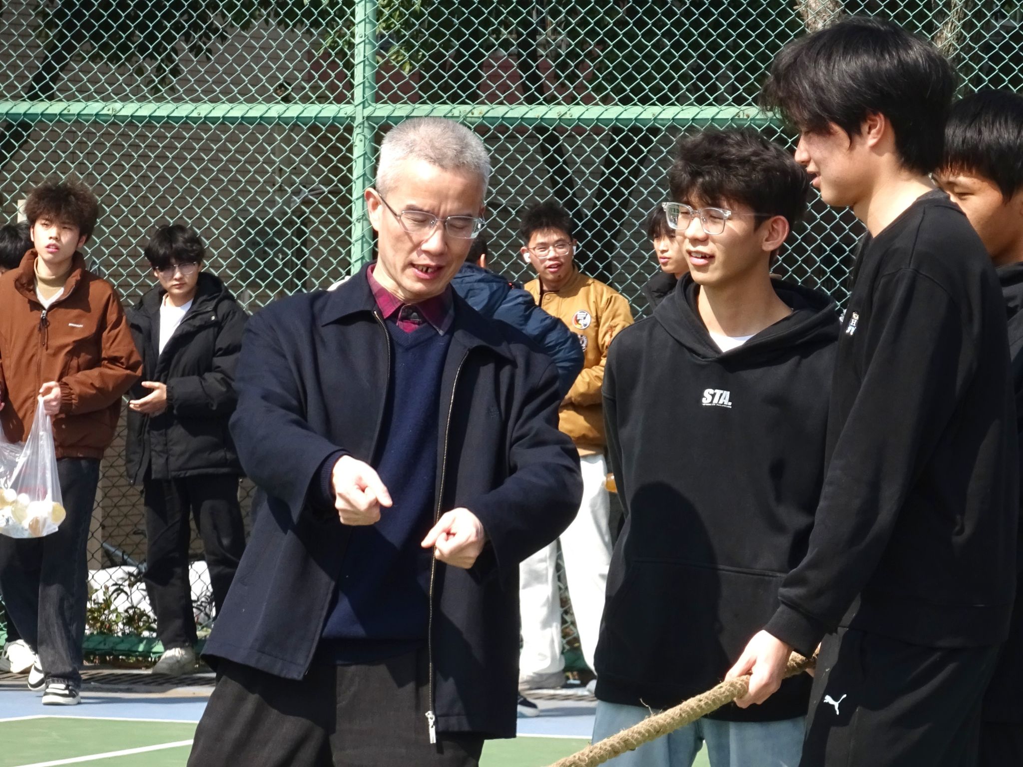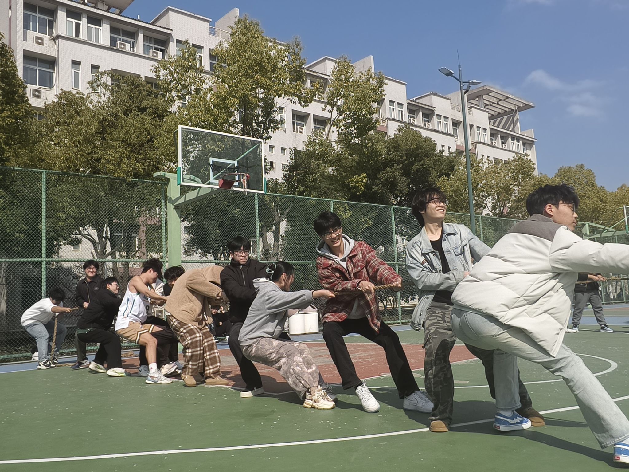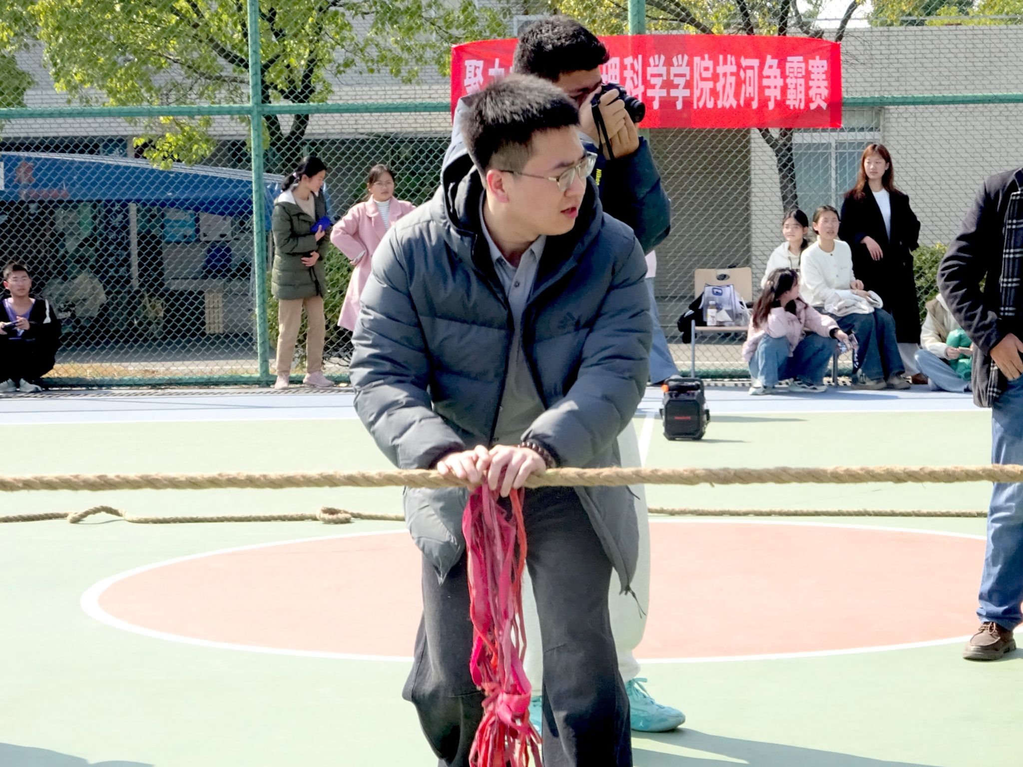 开幕式结束后,聚力方程拔河争霸赛初赛正式开始。段溢波,以及辅导员、班主任老师全程参与活动,师生互动其乐融融。