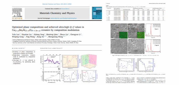 近日,2022级微电子科学与工程专业本科生罗雨露以第一作者的身份在SCI期刊《Materials Chemistry and Physics》(IF:4.3, 中科院3区)上发表了题为“Optimized phase compositions and achieved ultra-high Q×f values in Ca(2+y)Sn2Al(2+x)O(9+1.5x+y) ceramics by composition modulation”(通过成分调制优化Ca(2+y)Sn2Al(2+x)O(9+1.5x+y)陶瓷的相组分并实现超高Q×f值)的研究论文,太阳集团为第一完成单位,杜康博士为第一通讯作者、汪胜祥教授共同通讯作者。这是公司首次以本科生为第一作者在国际SCI期刊上发表论文,实现了重大突破,表明公司本科生培养质量获得了进一步提升。