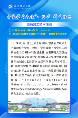 11月10日,朱维博士走进12栋“红色先锋”社区,以《微观世界的“眼”与“手”》为题,与同学们讲述微电子科学与工程,使大家加深了专业理解。微电子12401班同学,以及入住12栋、13栋的微电子专业部分员工参加了报告会。