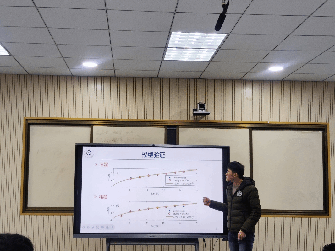 胡佳青汇报了《Fractal Study of Bingham Fluid Flow in Dual Porous Media》。非牛顿流体在多孔介质中的渗流特性研究在石油工程、环境工程和生物工程等领域具有广阔的应用前景。以往研究大多基于单一多孔介质中牛顿流体的讨论,忽略了双重多孔介质中非牛顿流体的研究。本研究拟聚焦于双重多孔介质中宾厄姆(Bingham)流体流动的分形特征,旨在揭示复杂地质结构内非牛顿流体行为的微观机制。基于广义达西定律和分形理论,我们拟首先构建描述双重多孔介质结构和宾厄姆流体流动特性的数学模型,结合分形维数与孔隙结构参数,能够更精确地模拟真实地质条件下的流体传输过程。
