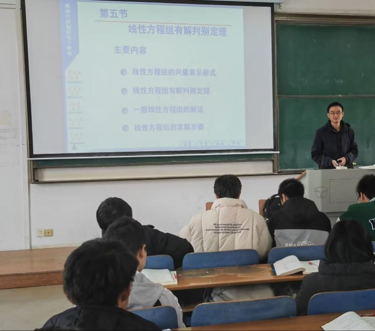 15vip太阳集团数学与应用数学系以本学期期中教学检查为契机,于2022年10月14日上午在阳光校区3号教学楼517教室举行《高等代数》示范教学观摩课,付红波老师主讲“线性方程组有解判别定理”。应数系、信科系和大数中心部分老师进行了现场观摩和研讨。