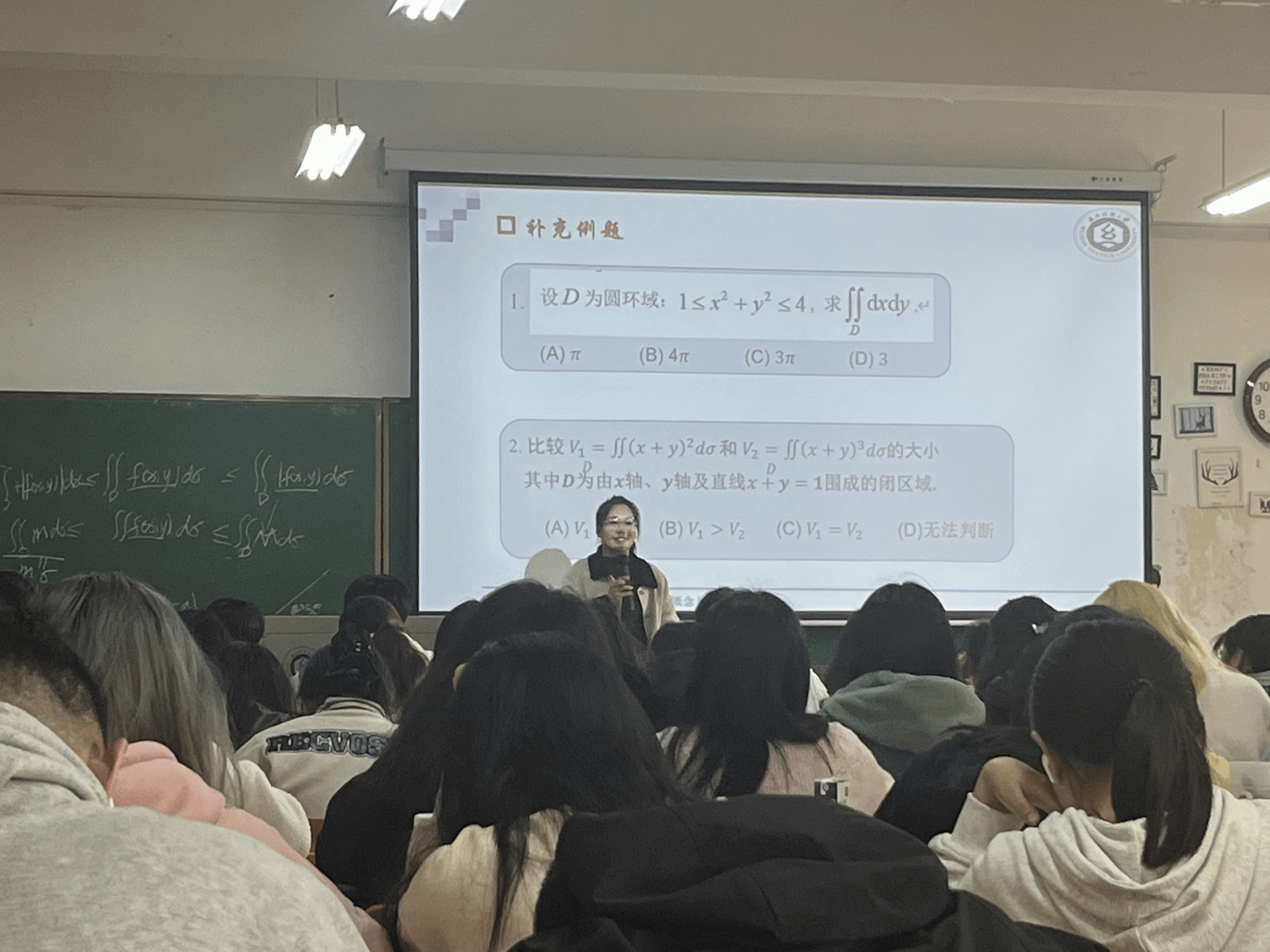 郭秀娅老师所教授的微积分(下)课程--《双重积分法的概念及性质》充满了生动与活力。她以问题驱动的教学方法导入新课,并采用动画演示的多媒体课件与板书相结合的方式,图文并茂地讲解定积分与二重积分的区别于联系,让员工在已有知识的基础上,加深对新知识的理解与记忆。随后,再通过课外例题的补充,让员工学以致用,举一反三,课堂氛围较好。
