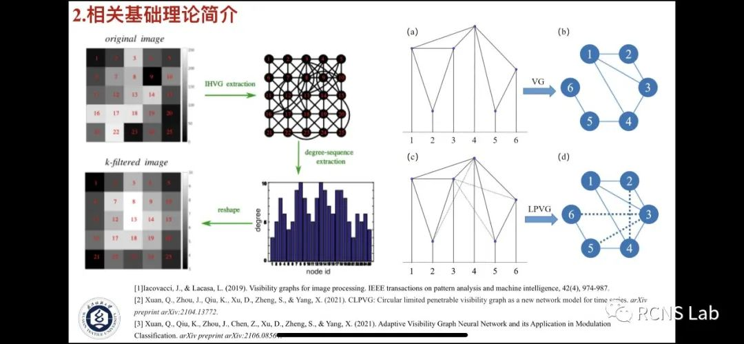 第二部分,回顾了本文研究所涉及了的时间序列、复杂网络、图像处理、机器学习的相关概念和方法,包括可视图、图片可视图、小世界网络、ER随机图模型、最短路径、集聚系数、拟等距同构等理论知识。
